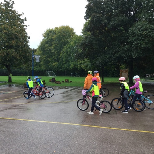 Once we were safe we put on our high vis vests and went out on the road to practise turning, U-turns, T-junctions and make sure we looked six times before we go. Although we had to cycle in the rain we had so much fun and will never forget it.